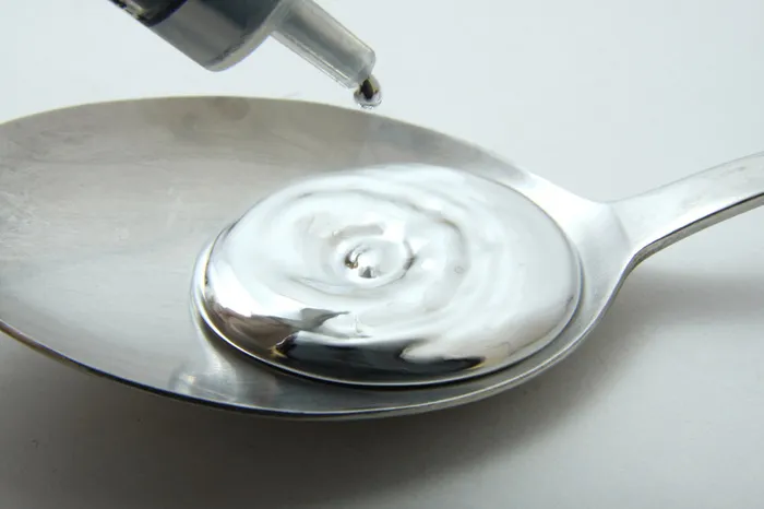 - Prikupljanje: Stavite rukavice. Veće kuglice žive gurnite jednu prema drugoj pomoću tvrdog papira ili kartona dok se ne spoje. Zatim ih pažljivo gurnite na papir i ubacite u staklenku s poklopcem.